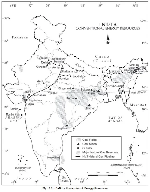 India Conventional Energy Resources Map (Coal Mines, HVJ Pipeline)
